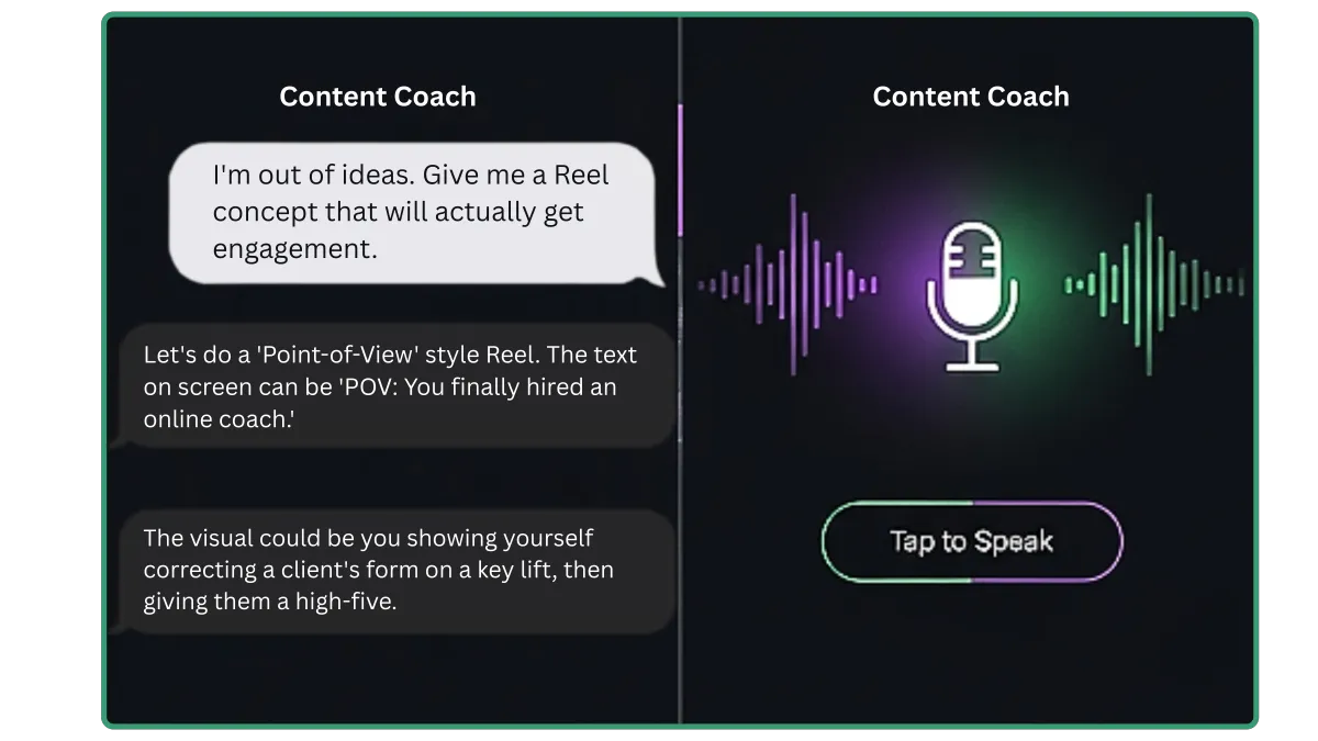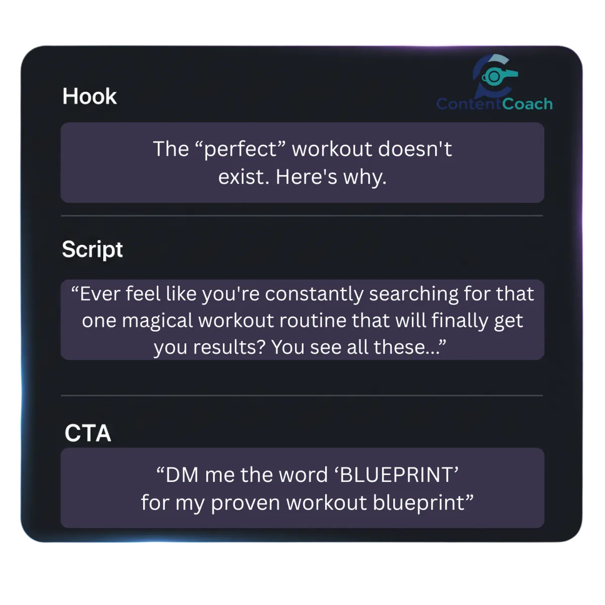 The AI analyzes proven content structures (like Pain-Agitate-Solution) and applies them to the fitness niche. It helps you create content that addresses real client problems and naturally leads them to your call to action, turning your social media into a reliable lead source.